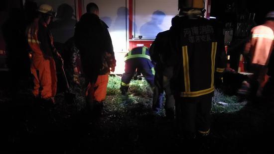 18时55分,临颍县公安消防大队指挥中心也接到了瓦店镇杨裴城有人落井的报警,临颍县指挥中心立即调派前进路中队一辆抢险救援车,一辆城市主战车赶赴现场。到达后,消防官兵立即利用移动供气原对井底进行供气,特勤车班长和主站车班长分别带领1名战斗员打救援绳结。19时26分前进路中队到达现场,经侦查后立即按分配工作进行救援。