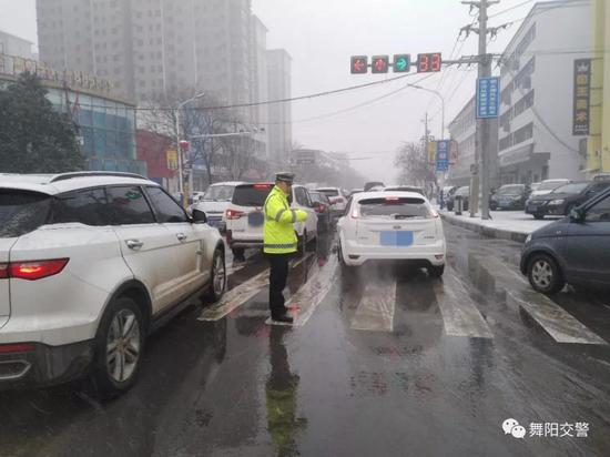 2月13日,突如而来的大雪,给群众出行带来了极大的不便,也给广大驾驶员驾驶机动车增大了难度,为确保百姓出行安全,舞阳县公安交通警察大队启动雪天应急方案,在重点路段增加警力部署,全力以赴确保出行安全畅通。