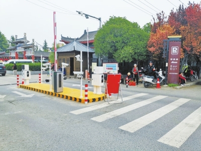 该停车场进出口放行杆均是抬起状态,停车场进口虽安装有监控计时设备,但均未开启使用。入口处的路旁设立有收费标准牌。记者看到,收费标准牌上显示为“洛阳市旅游区白马寺停车场”,收费标准则按照“洛发改(2018)2号”。收费项目及标准显示:吉普车、小轿车、8座以下面包车为10元/次;9座至19座面包车15元/次;大客(货)车、特种车、20座以上面包车为20元/次。