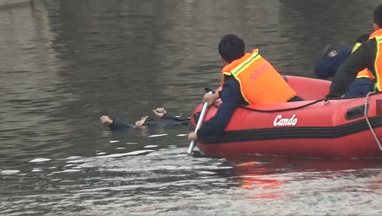 安阳一男子跳河轻生 消防队员冰冷河水中紧急施救
