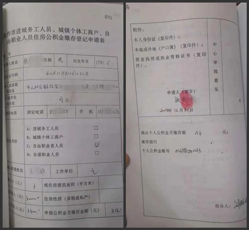 当日11时许,记者在该中心调取到了张先生了开户时的原始资料------一张名为《焦作市进城务工人员、城镇工商户、自由职业人员住房公积金缴存登记申请表》。这张2页的表格中,只有缴存户的个人信息,以及个人公积金账户和缴存额,但却没有告知书一栏。该中心的工作人员称,开户申请资料一直在升级更新。