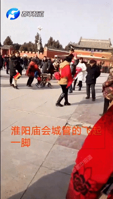 淮阳庙会城管踢翻老人小货摊 涉事工作人员被停职