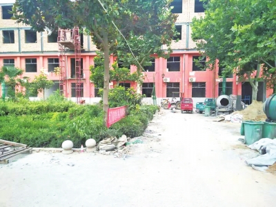 学校在加班加点施工,希望赶在秋季开学前完工。