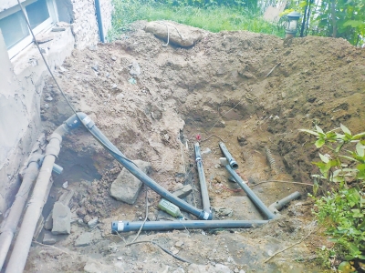记者从燃气公司了解到,当天下午他们赶到现场后进行查看,25号楼墙边被挖出了一个大坑,坑内散落着几根管子,被截断的燃气管道不停地向外冒气。燃气公司工作人员介绍,各家各户连接的管子是燃气低压管,这些工人在改管道时截错了管子,把燃气中压管截断了,导致最后无法收拾。