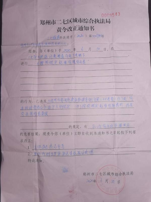 7月2日,郑州市二七区停管中心对一起乱收费的情况进行了严厉处罚。