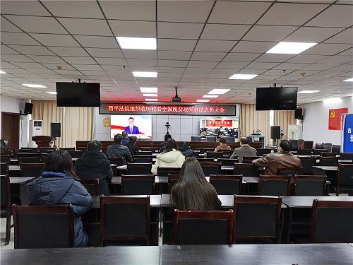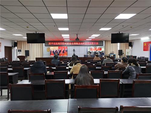 2月25日上午10时,西平法院组织干警在九楼会议室收看全国脱贫攻坚总结表彰大会直播。