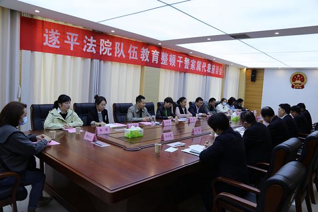 为深入贯彻落实中央、省、市、县政法队伍教育整顿部署要求,推动遂平县人民法院队伍教育整顿查纠整改环节起好步、开好局,4月15日下午,遂平法院召开干警家属代表座谈会,邀请部分干警家属代表参加座谈。党组书记、院长刘金洲出席会议并讲话,党组成员、副院长曹国忠主持会议。